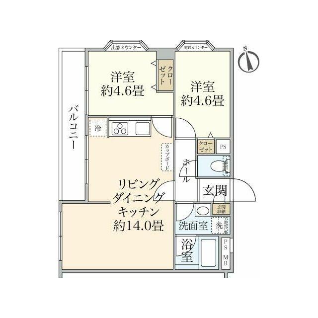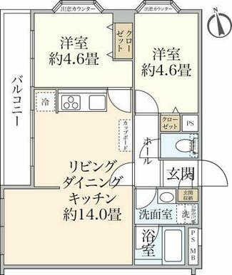 | 間取り(内訳) | 2LDK(LDK14、洋4.6、4.6) | ||